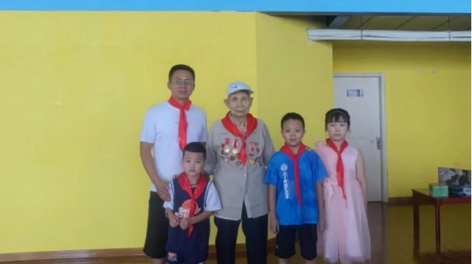8月2日,頤信養(yǎng)老黨支部成員來到團結(jié)西路社區(qū),與退伍老兵們重溫軍人入伍誓詞,并帶領(lǐng)社區(qū)兒童聆聽他們的故事。退伍老兵馮博用最質(zhì)樸的語言分享了曾經(jīng)軍旅生涯難忘事跡,促使新一代社會主義接班人感受艱苦卓絕的革命歷程,深刻領(lǐng)悟軍人們不屈不撓、艱苦奮斗的革命精神和高尚情操,為兒童們樹立人生榜樣,培養(yǎng)遠(yuǎn)大理想和堅定信念。最后,孩子們?yōu)橥宋槔媳灰凰蜕狭思t領(lǐng)巾與誠摯的祝福,爺爺們微顫卻標(biāo)準(zhǔn)的軍禮、溫暖而寬厚的笑容,令在的孩子們無不為之動容,這也是老一輩和新一代之間的精神傳承。
