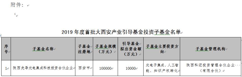 附件:2019年度首批大西安產(chǎn)業(yè)引導(dǎo)基金投資子基金項(xiàng)目名單